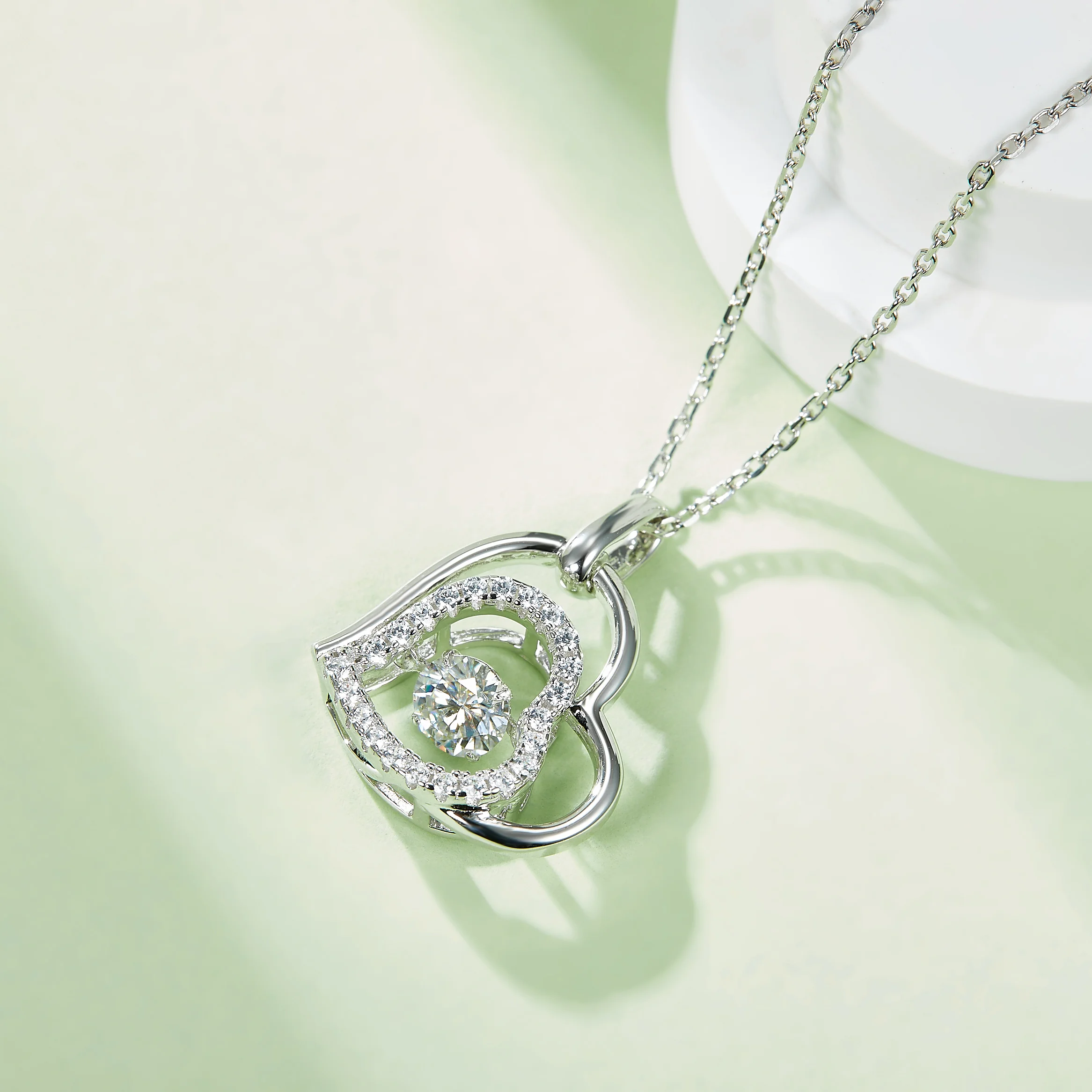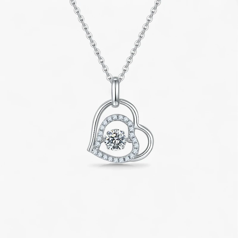 The exquisite silver heart-shaped moissanite pendant necklace features a radiant silver metal base, with a dazzling round moissanite at its center surrounded by countless smaller moissanites. The overall design resembles the brightest stars in the night sky, emitting a captivating glow.The central round moissanite stands out as the focal point of love, while the surrounding smaller stones represent companionship, weaving a beautiful story of eternity and romance. This necklace combines simplicity with elegance, making it perfect for both everyday wear and special occasions, ensuring you shine as the center of attention and showcase your unique charm.