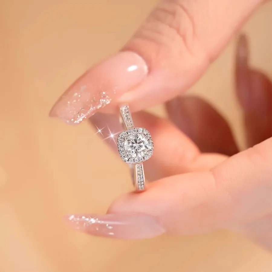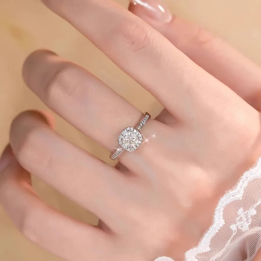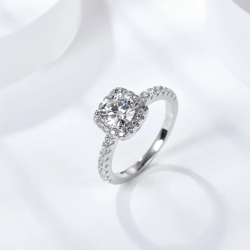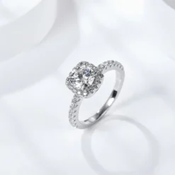 1ct | 2ct |3ct Cushion Halo Round Center Moissanite Ring