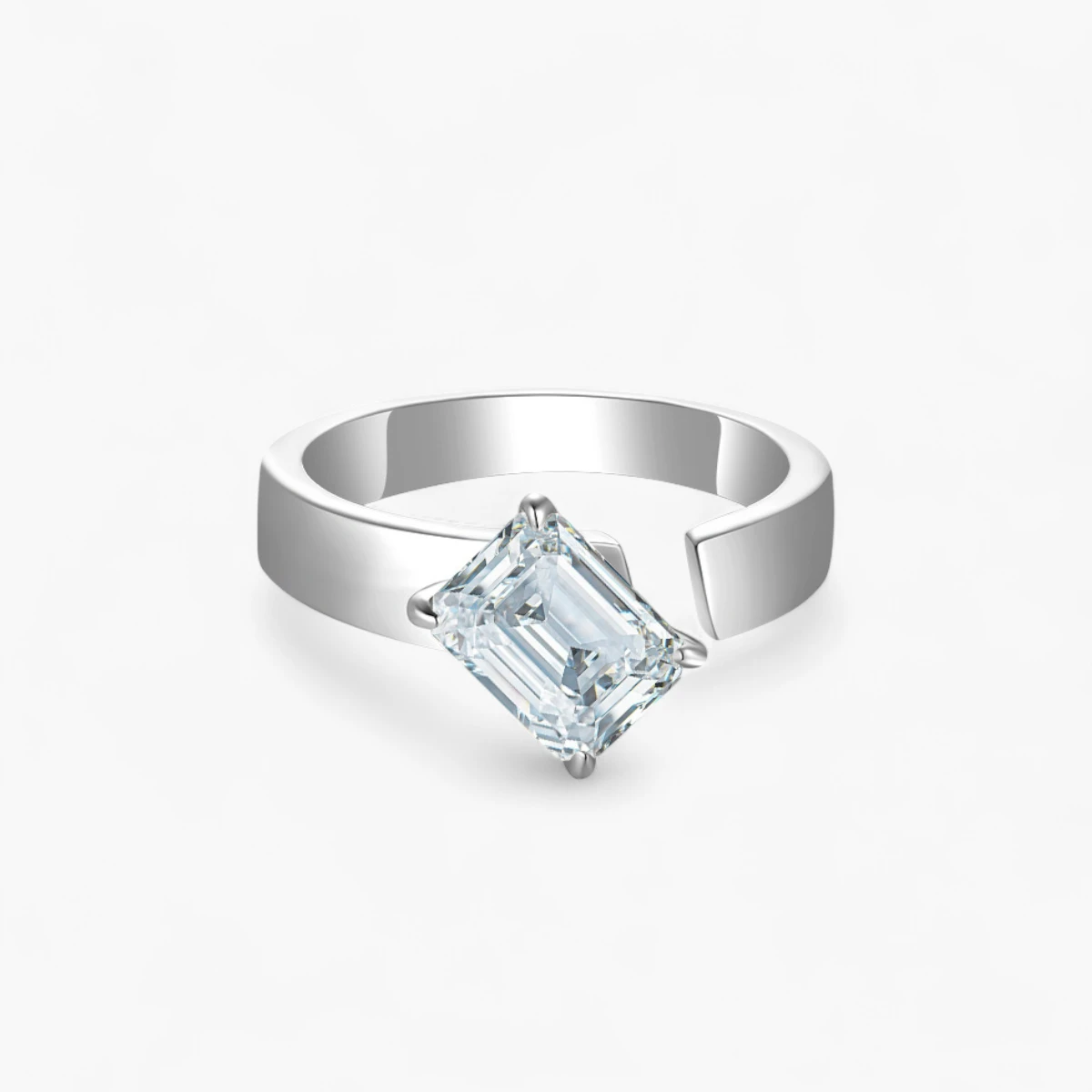 1ct Emerald Cut Moissanite Open End Solitaire Ring