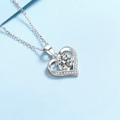 Crafted from pure sterling silver, this necklace features a stunning 1ct round moissanite encased within a heart, symbolizing a gift straight from the heart.