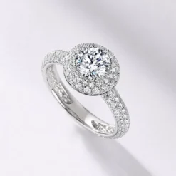 This luxurious ring beautifully combines classic and contemporary design elements, featuring a 1ct moissanite solitaire at the center, radiating unparalleled brilliance. The band is adorned with finely paved moissanite stones, adding depth and sparkle to the ring. Its unique stacking design allows it to be paired with other rings, creating a personalized and fashionable look. Crafted from high-quality sterling silver, the exquisite craftsmanship and elegant design give this ring an air of sophistication, making it the perfect symbol of eternal love and commitment.