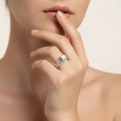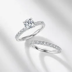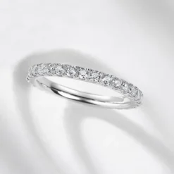 This 1ct moissanite solitaire stacking eternity ring beautifully combines classic elegance with contemporary design, making it a perfect symbol of everlasting love. The 1ct Moissanite center stone shines brilliantly, radiating unparalleled sparkle, while the stacking design adds depth and versatility, allowing it to be worn alone or stacked with other rings to create a unique and fashionable look. Crafted from high-quality sterling silver, the refined craftsmanship and sleek design come together to make this ring the ideal representation of eternal love and commitment.