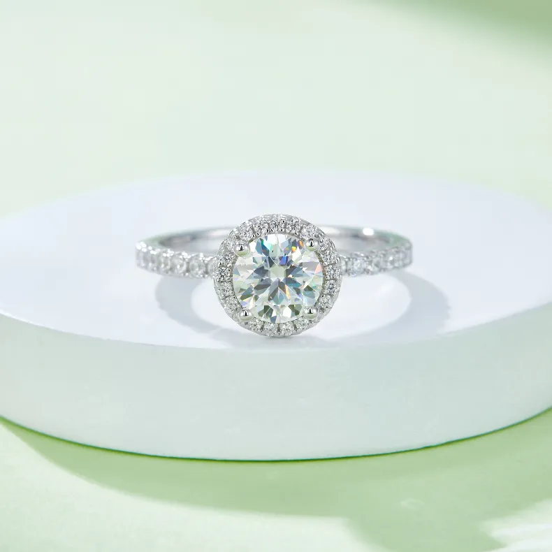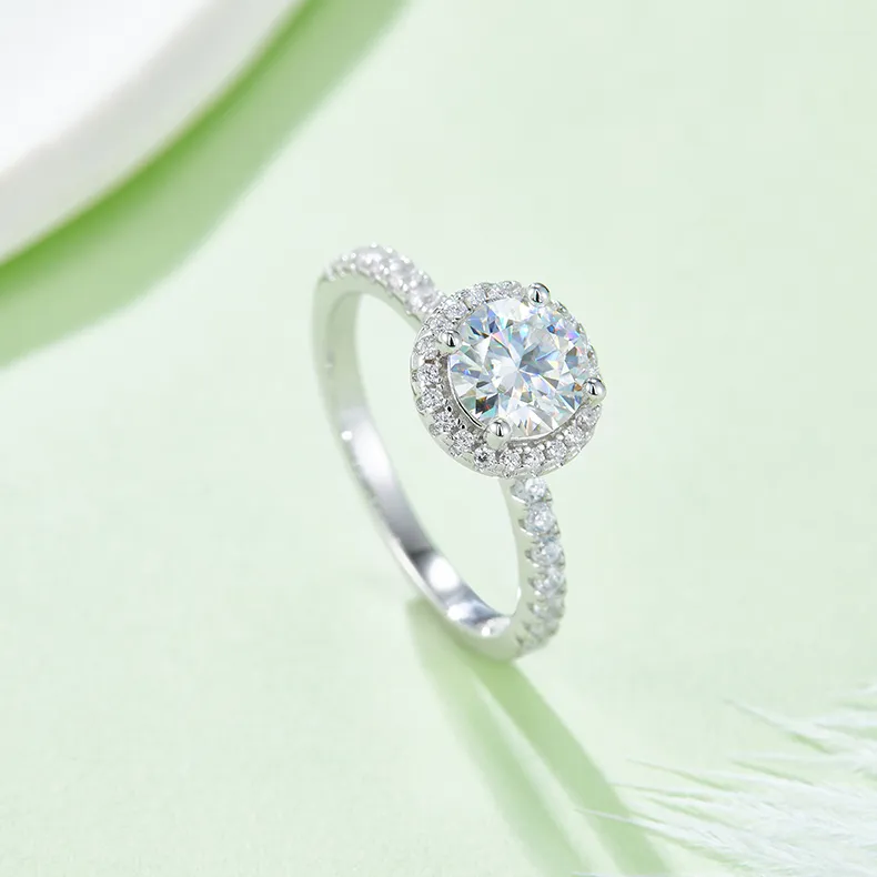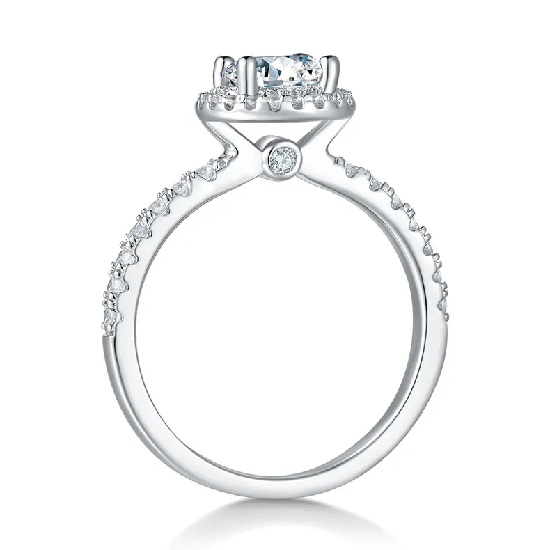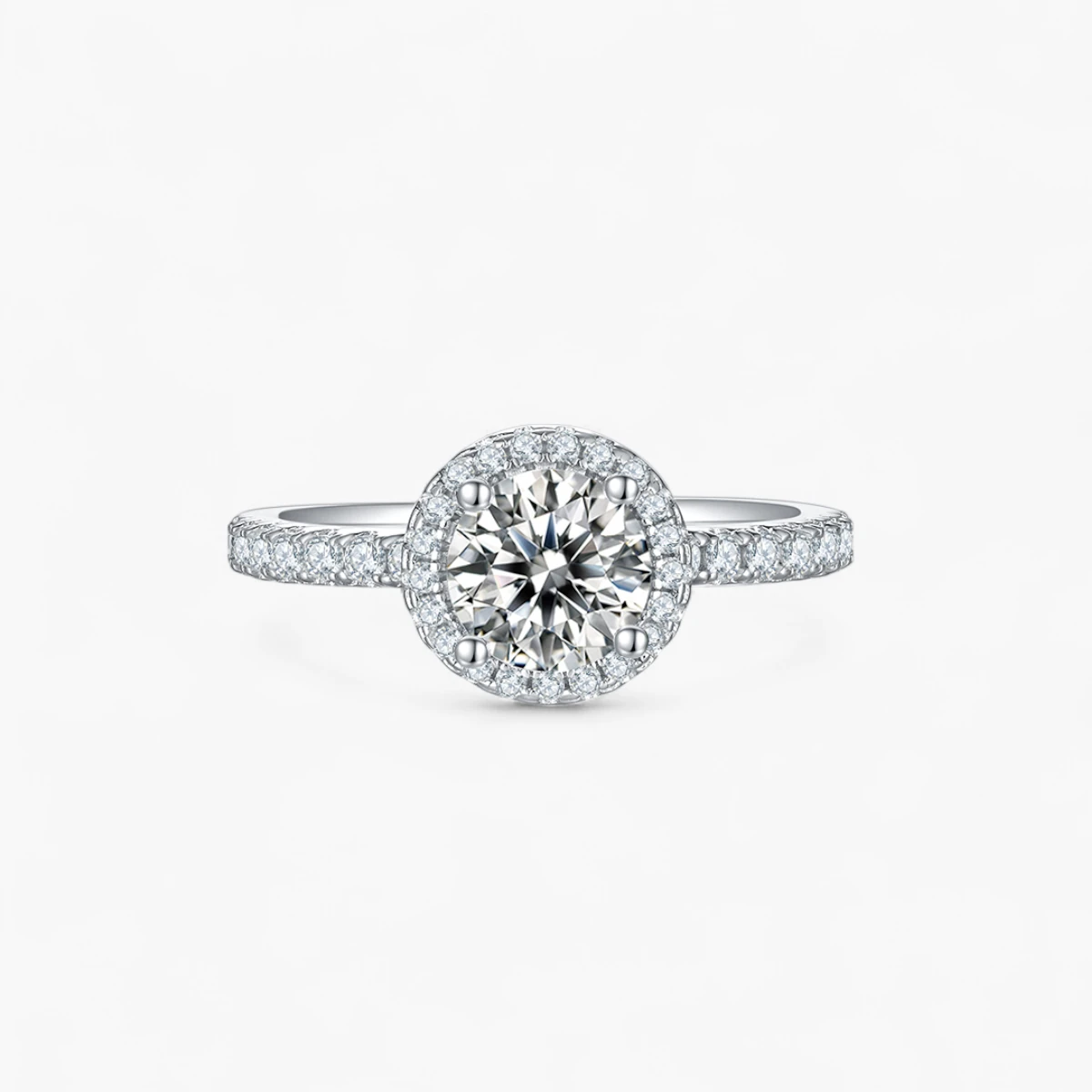 Experience timeless elegance with this classic round ring. Crafted in pure silver, it features a stunning Halo of side stones that enhance its natural sparkle. The round adds a touch of sophistication, making it a perfect choice for any occasion. Exude luxury and grace with this exquisite piece of jewelry.