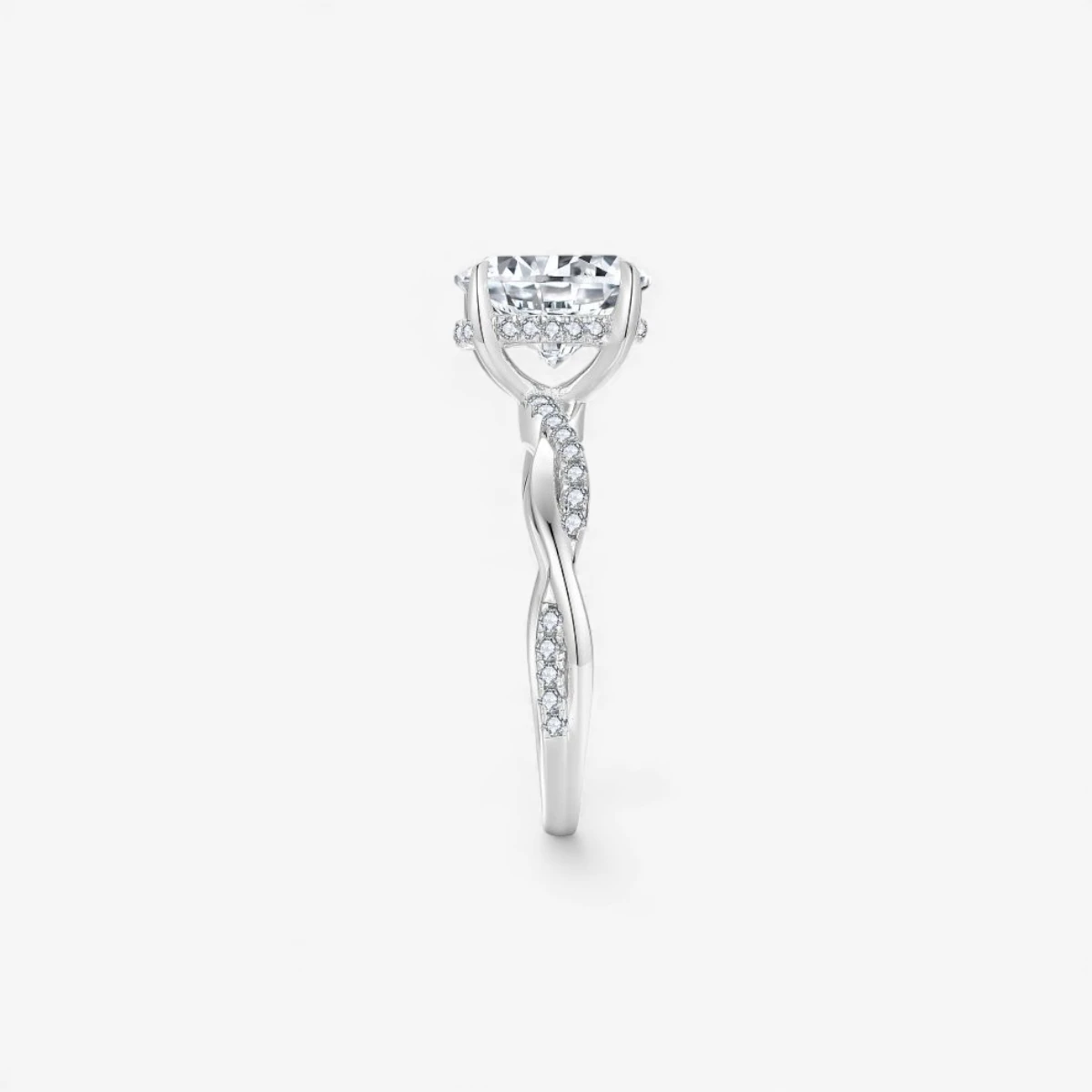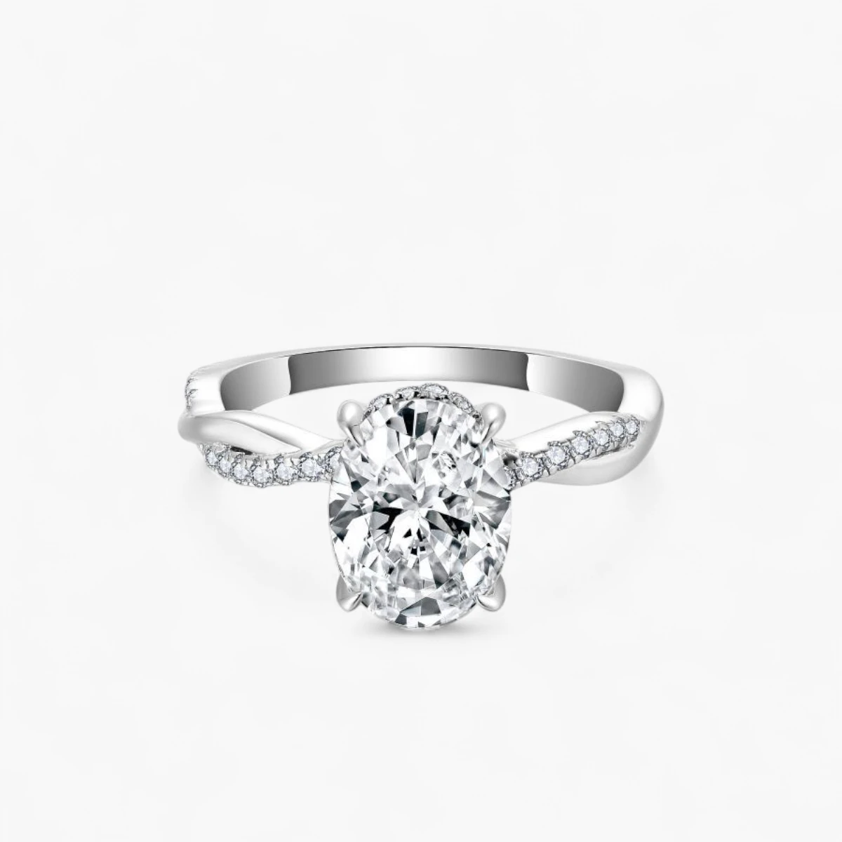 2ct Oval Cut Moissanite Twist Side Stone Ring