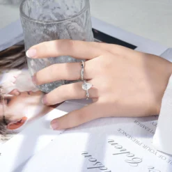 This 2ct pear-cut moissanite twisted sterling silver ring features a stunning 2-carat pear-cut moissanite as the center stone, accented by 18 sparkling moissanite side stones. With its elegant twisted design, this ring exudes a modern charm, perfect for wearing solo or stacking with a plain twisted band for a unique, stylish look.