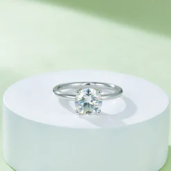 The most classic round engagement ring of all time, crafted from sparkling moissanite and sterling silver.