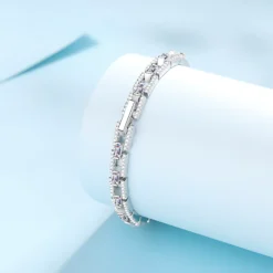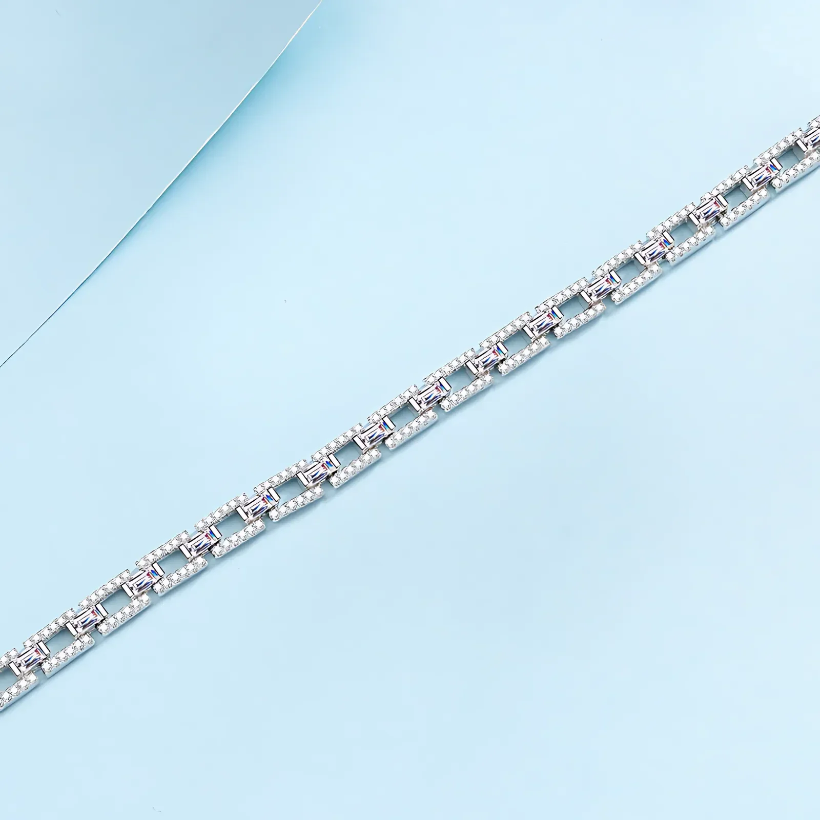 The 3ct moissanite silver streetwear bracelet is a fashion-forward accessory that combines the elegance of silver with the brilliance of moissanite. This unique bracelet features a stunning 3-carat moissanite stone, which sparkles and shines with a captivating fire and brilliance, rivaling even the finest diamonds. The silver setting complements the moissanite stone, creating a look that is both modern and timeless.