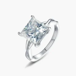 This 4ct princess cut moissanite twist solitaire ring showcases a minimalist yet elegant design. At its center lies a brilliant 4ct princess-cut moissanite stone, sparkling with the brilliance of a diamond. The twist band design adds movement and a modern touch, with unique curves and light interplay, creating an artistic and distinctive charm. Made from high-quality sterling silver, the exquisite craftsmanship and fine polishing make the ring even more dazzling. Whether for a wedding, anniversary, or everyday wear, this ring is the perfect symbol of love and commitment.