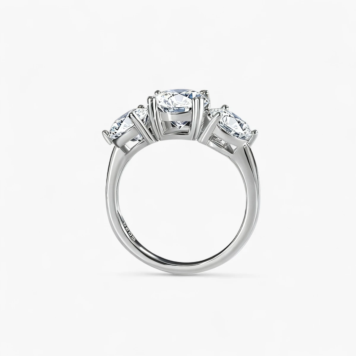 This elegant silver ring features three stunning moissanite stones, each beautifully set in a refined prong, showcasing perfect symmetry and balance. The moissanite stones radiate a captivating rainbow sparkle under the light, like the brightest stars in the night sky. The silver band contrasts against a pure white background, emphasizing the ring’s elegance and sophistication. More than just a piece of jewelry, this moissanite ring is a romantic symbol of love and commitment, ideal for any occasion and sure to reflect your unique charm and style.