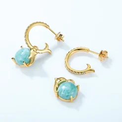 Our amazonite drop earrings offer a unique blend of natural beauty and refined elegance. The earrings feature amazonite stones, showcasing their calming green-blue hues that evoke the tranquility of the sea.