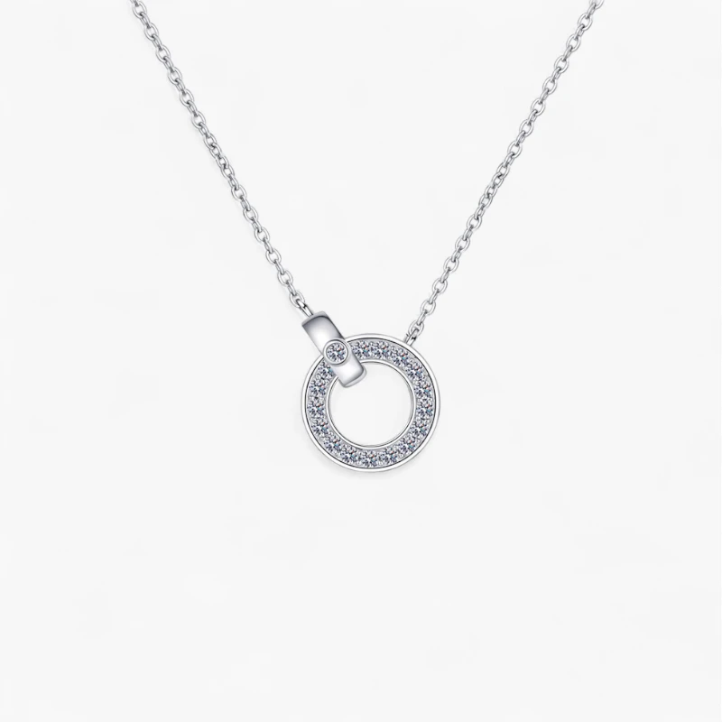 Circle Pendant Moissanite Necklace