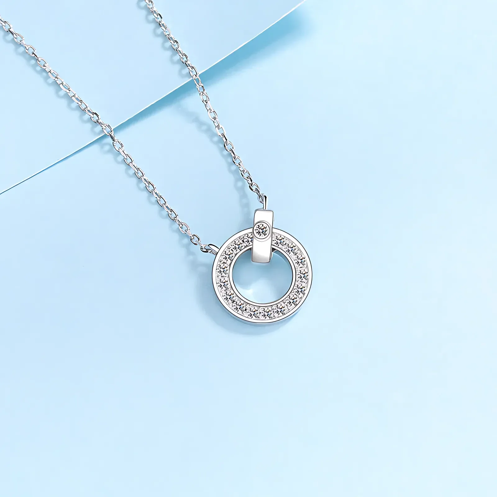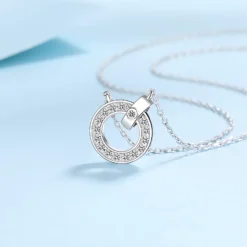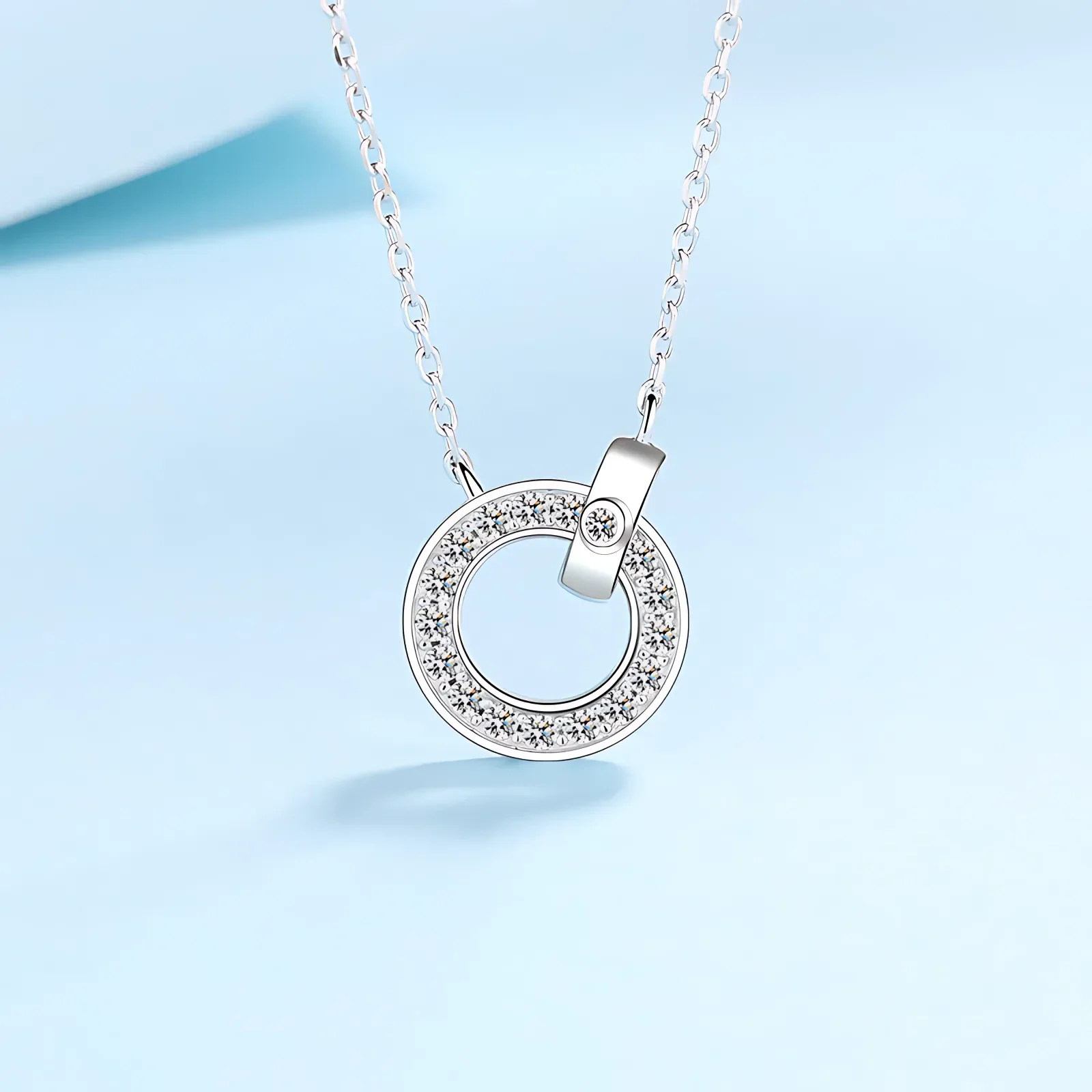 Indulge in the exquisite beauty of our circle pendant necklace, crafted from sterling silver and adorned with 17 sparkling 0.45ct moissanite stones. This timeless piece captures the essence of elegance and sophistication, with each meticulously set moissanite radiating brilliance. Perfect for any occasion, the necklace adds a touch of luxury and shine to your look. Elevate your jewelry collection with this stunning circle pendant, a true symbol of refined grace.