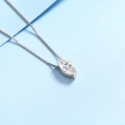 Experience refined elegance with our marquise cut pendant silver necklace. Featuring a stunning 1ct marquise-cut moissanite, this necklace embodies the essence of minimalist design. The exquisite moissanite, known for its exceptional brilliance, is set in sterling silver, creating a timeless piece that complements any outfit. Perfect for everyday wear or special occasions, this necklace is a testament to understated luxury and modern sophistication. Add a touch of graceful simplicity to your jewelry collection with this captivating marquise cut pendant.
