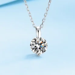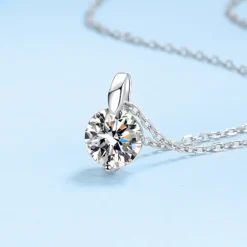 Elevate your style with our minimalist moissanite pendant silver necklace, featuring a mesmerizing round moissanite stone. Available in 1ct, 2ct, and 3ct sizes, each stone radiates brilliance and sophistication. The sterling silver setting enhances the natural sparkle of the moissanite, creating a piece that effortlessly blends elegance with minimalism. Perfect for everyday wear or special occasions, this necklace complements any outfit with its timeless charm and understated luxury. Treat yourself or a loved one to the timeless beauty of this stunning pendant.