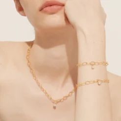 The bracelet features a beautifully crafted gold chain that adds a touch of sophistication. The gold complements the moissanite stones perfectly, creating a harmonious and timeless piece of jewelry.
