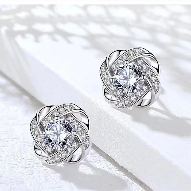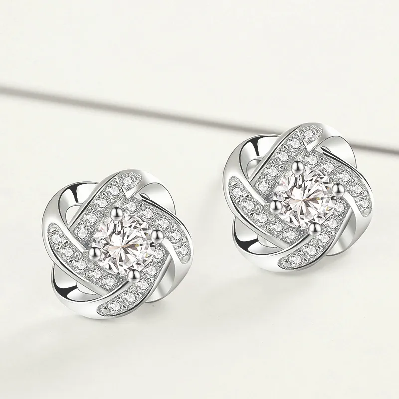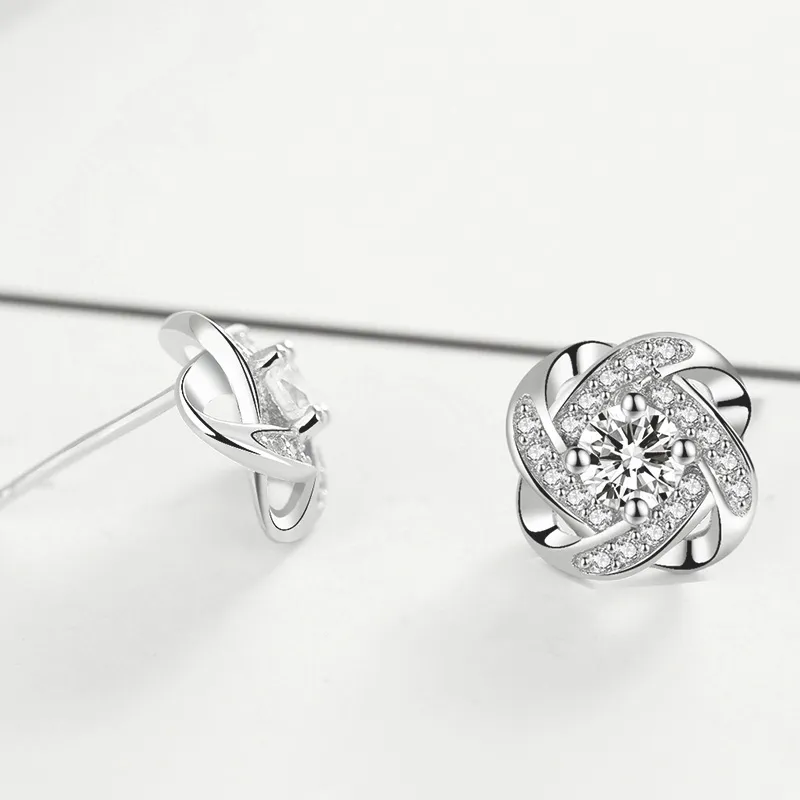 Permtoya knot of love sterling silver stud earrings. knot of love earrings, flower earrings, gold infinite around with halo, a round solitaire in the middle of knot, cool classic style and brilliant for you. rose gold earrings romantic, yellow gold earrings brilliant, silver earrings pure. you can also choose favorite color earrings for you and your friends. hurry up to choose some holiday gifts for some important days at Permtoya.com!