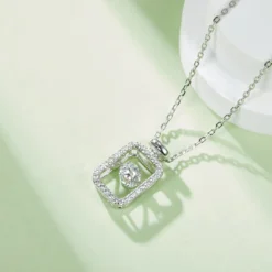 Unlock a new dimension of fashion with fragrance! This moissanite perfume bottle necklace marries the timeless elegance of a perfume bottle with dazzling moissanite, making it seem like you’re wearing not just a necklace, but a vial of shimmering radiance and sophistication. The lightweight sterling silver chain whispers comfort, while the moissanite on the bottle resembles the enchanting essence within, twinkling with captivating brilliance. More than just a fashionable accessory, it’s an extension of your personality, effortlessly conveying your unique taste and extraordinary aura. Whether paired with casual wear or evening gowns, it elevates your charm effortlessly. Bring home this ‘fragrant’ spell of fashion magic today!