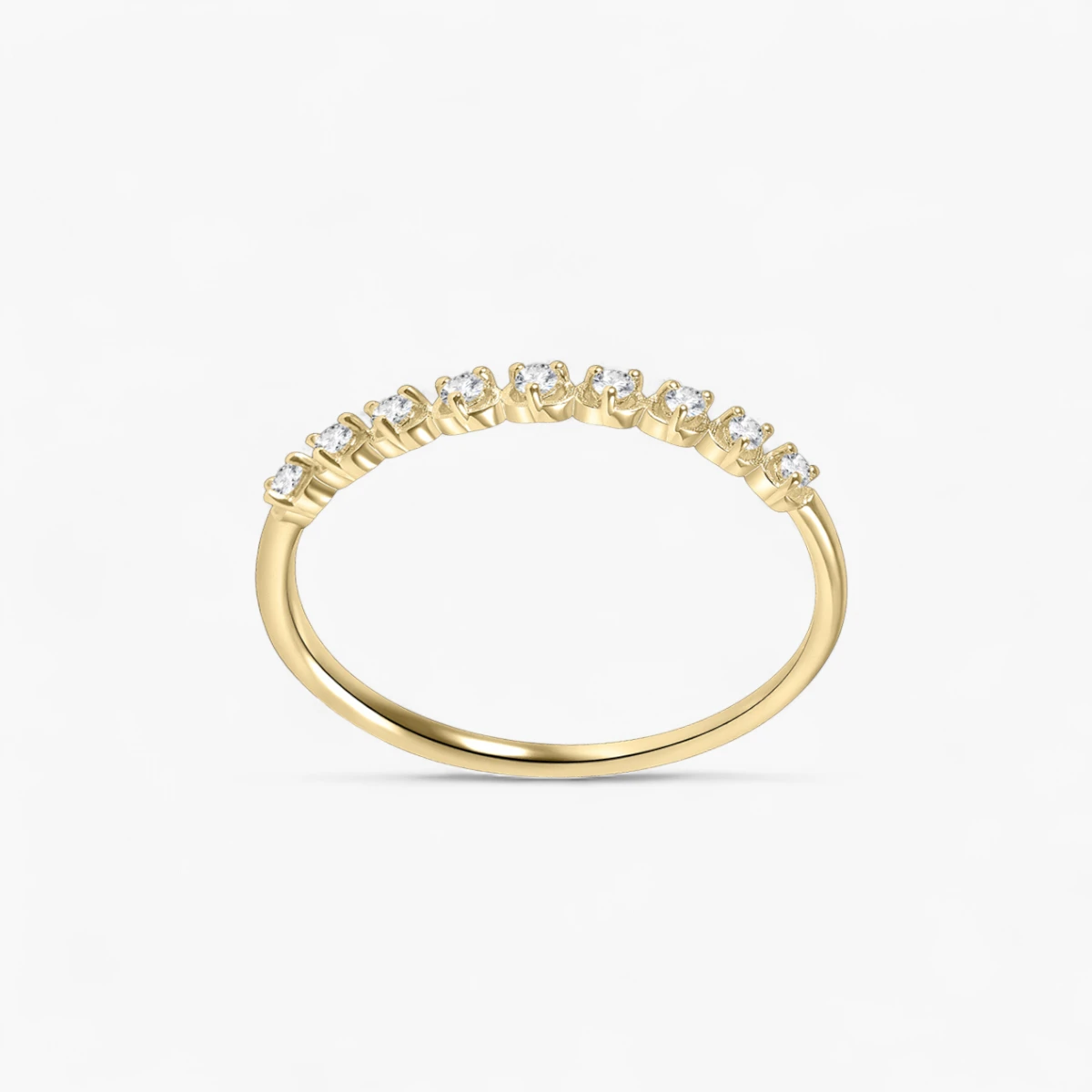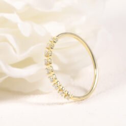 This exquisite ring features 9 moissanite stones carefully set into a band crafted from silver-plated 18K gold, each stone radiating its own brilliant sparkle, like stars adorning your finger. The intricate design perfectly combines the smooth metal band with the dazzling moissanite stones, offering a look of understated luxury. Whether worn alone or stacked with other rings, this piece adds a distinctive touch of elegance to your hand. Ideal for both everyday wear and special occasions, this ring is the perfect choice for modern women who appreciate sophistication and grace.