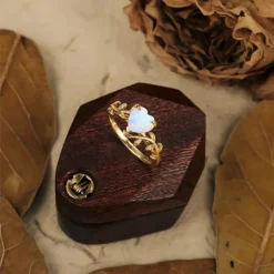 Nature-Inspired Flower Branch Heart Opal Ring