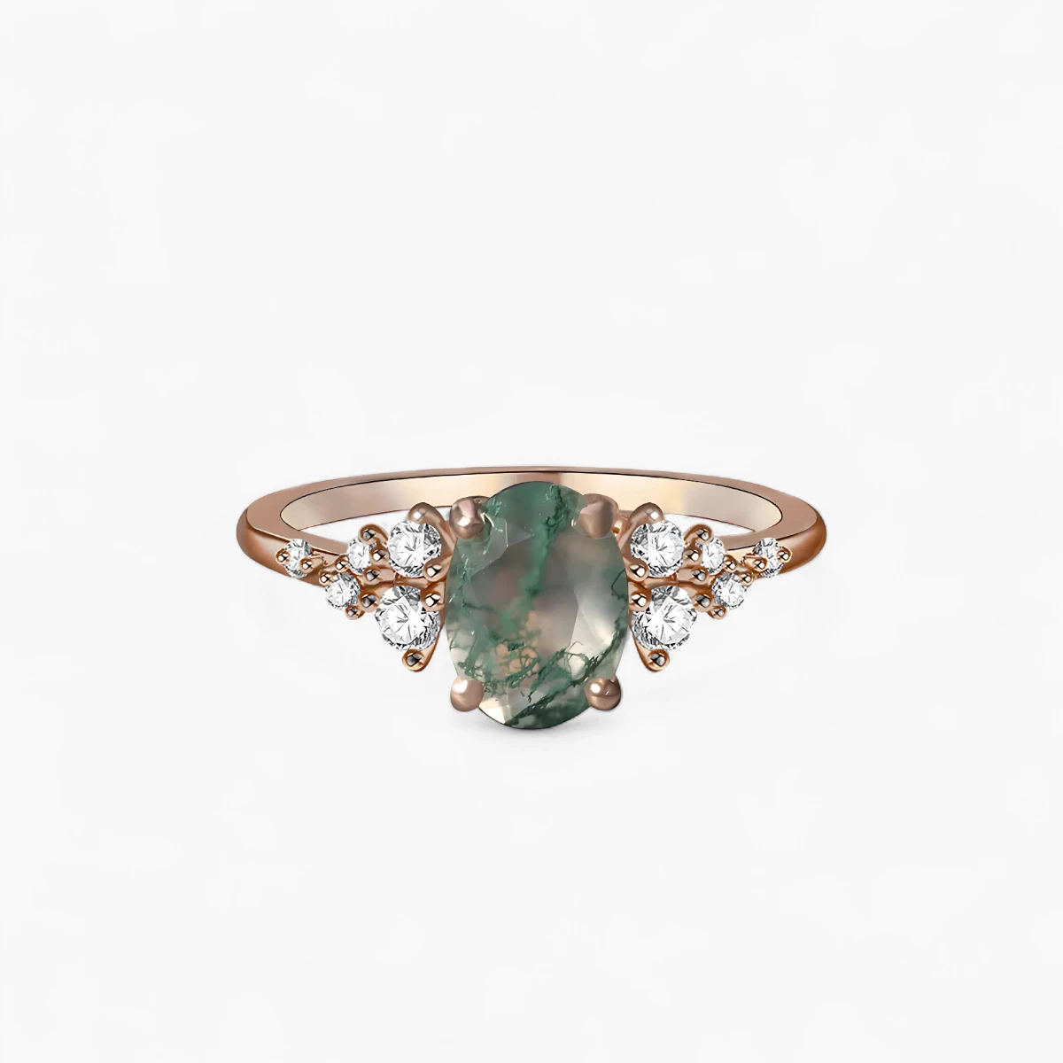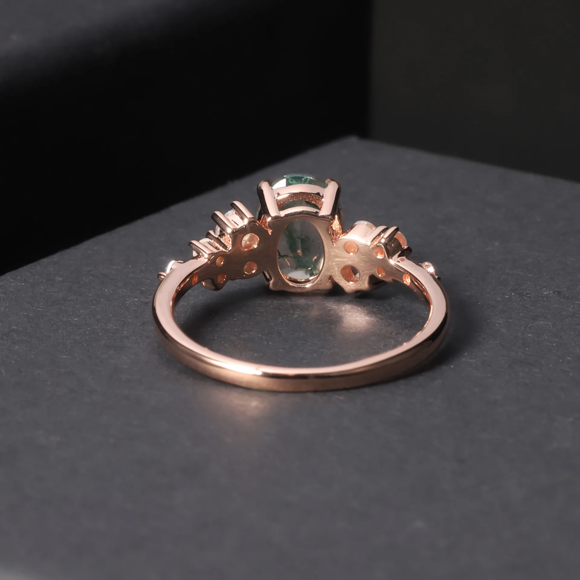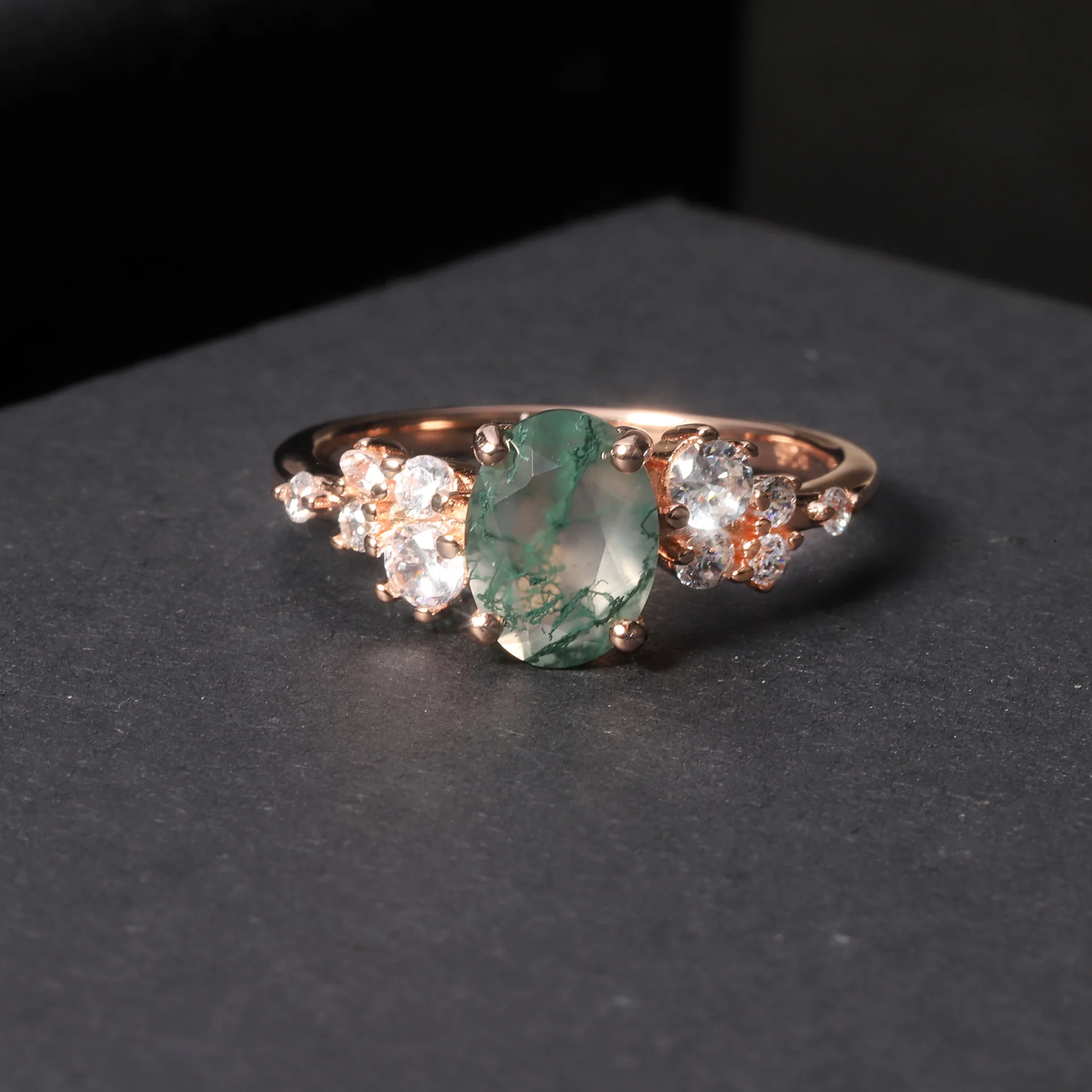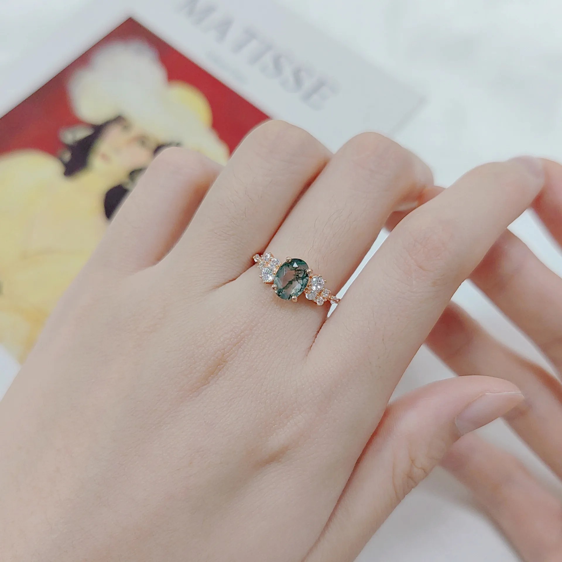The oval moss agate side stone ring, a vintage-inspired sterling silver beauty adorned with an elegant oval moss agate centerpiece, flanked by delicate accent stones, like a burst of color from bygone eras. More than just an accessory, it’s a unique expression of your personality and taste. Wear it while strolling through the hustle and bustle of the city or basking in the tranquility of nature, and feel the romance and elegance of the retro era. With its simple yet intricate design, the pure silver shines in harmony with the warm luster of the moss agate, exuding a subtle luxury. It’s the perfect finishing touch to your everyday outfits and an elegant companion for special occasions.