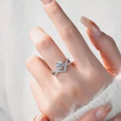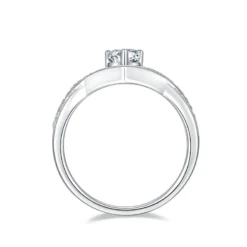 This pear-shaped Moissanite twisted ring brings a modern touch to a classic design. The unique twist band enhances the brilliance of the pear-cut stone, making it a standout piece. Perfect for those who love subtle elegance with a contemporary flair, crafted in sterling silver.