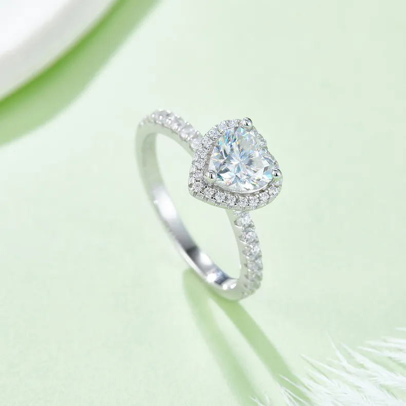 1ct Heart Moissanite Halo Ring