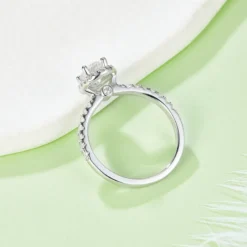 ♥ The stunning 2-carat oval moissanite silver engagement ring, a piece that embodies elegance and modern brilliance. This exquisite ring features a dazzling 2-carat oval moissanite known for its unmatched sparkle and fire. The oval cut, a trending favorite on Pinterest, maximizes the stone’s brilliance, creating a captivating play of light that draws admiration from every angle.