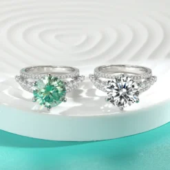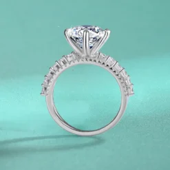 ♥ This 5 ct large moissanite silver ring is a perfect combination of luxury and elegance with its unique three-layer band design. The large moissanite stone is held securely in a fine 6-prong setting, which not only ensures the stability of the gemstone but also brings out the perfect brilliance of the stone, making it unforgettable at first glance.