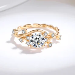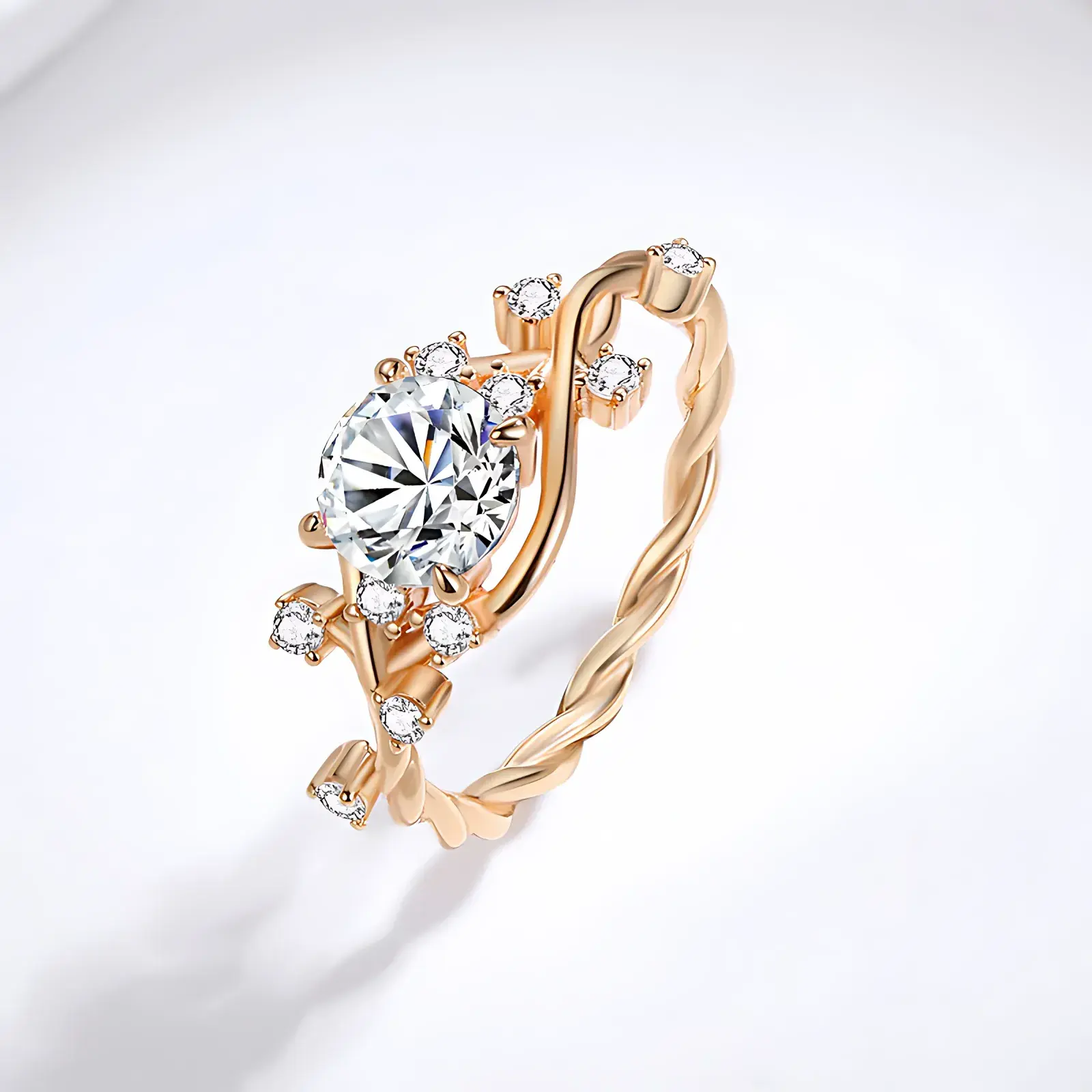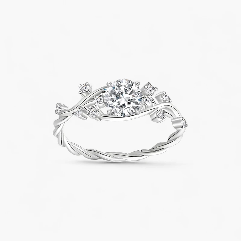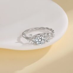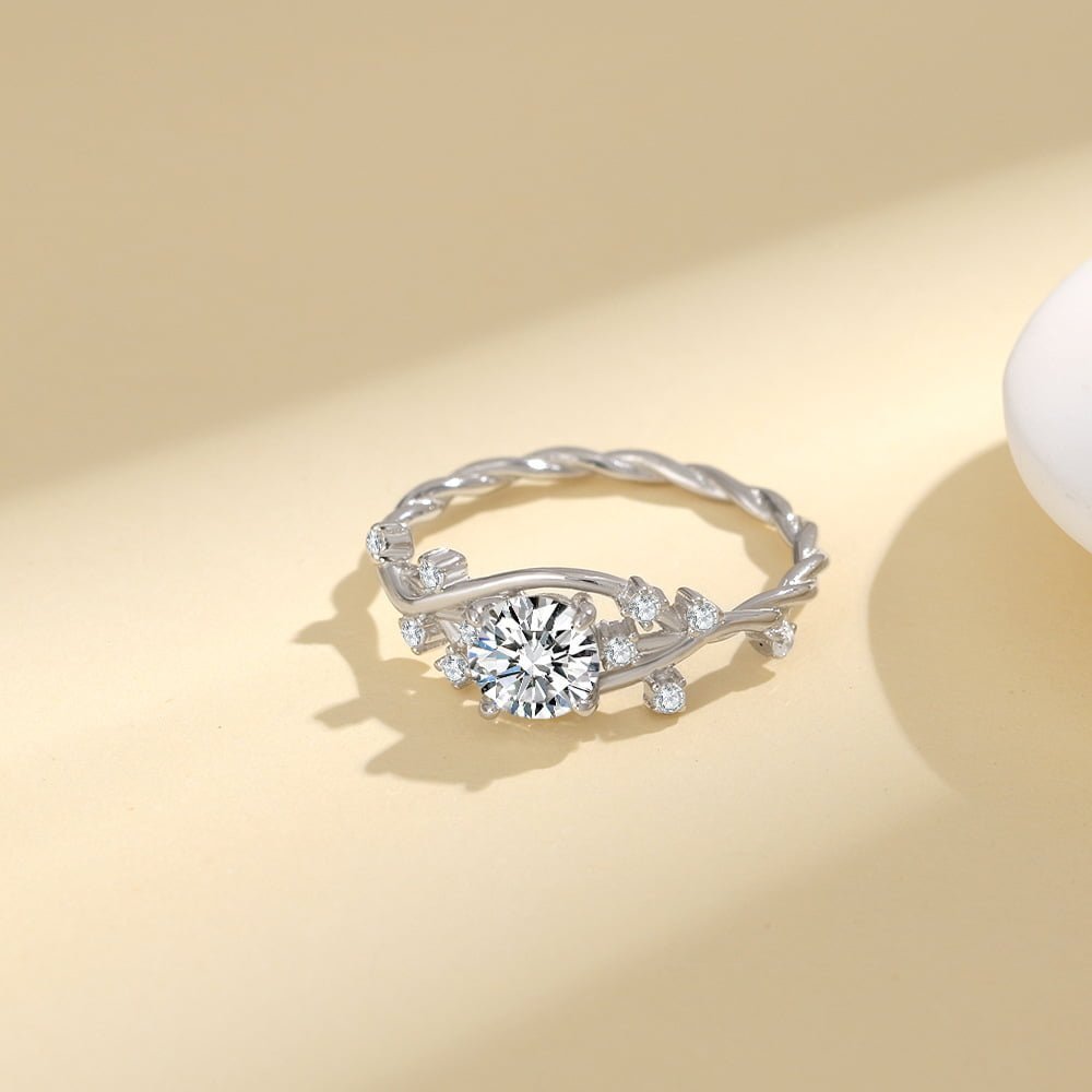 Flower branches wrap around the band like you and she are hugging each other tightly, let this romantic moissanite diamond silver ring witness your never-ending love. Gift to your loved one.