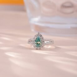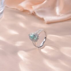 1ct Moissanite Green Halo Ring
