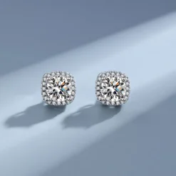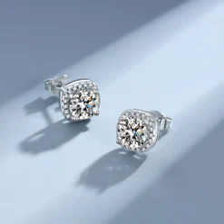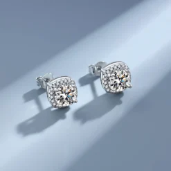 These chic square moissanite stud earrings, crafted from high-quality sterling silver, combine modern elegance with a sparkling brilliance that rivals diamonds. The carefully cut moissanite radiates a captivating luster, making these earrings a standout accessory for any occasion. Presented in a beautiful gift box, they are the perfect choice for yourself or as a gift.
