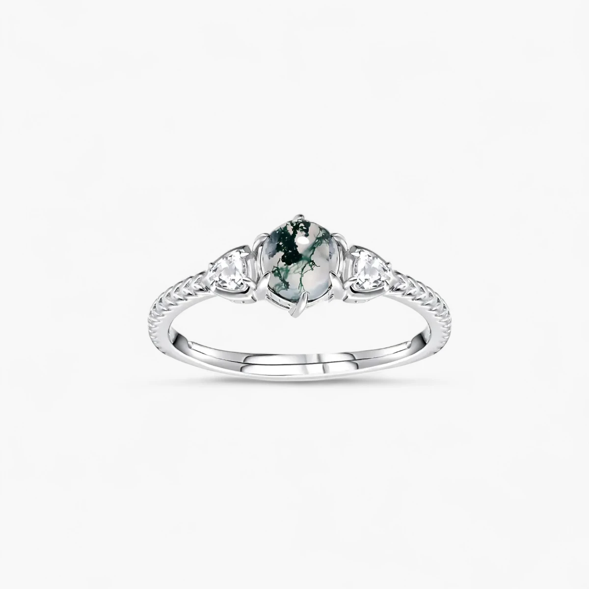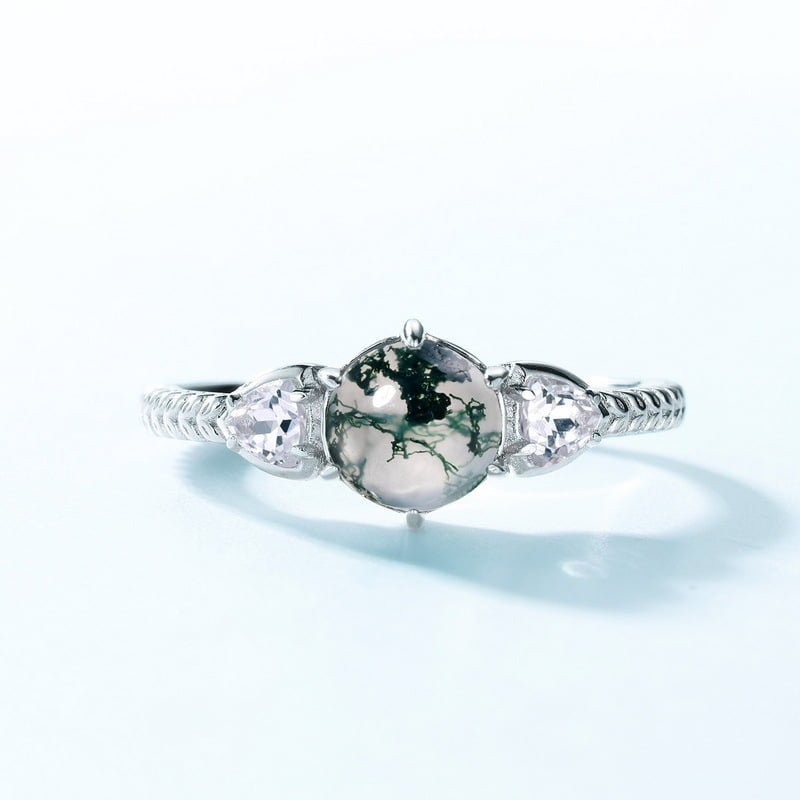 Our exquisite round moss agate engagement ring, a perfect blend of nature’s beauty and fine craftsmanship. This stunning ring features a round-cut moss agate gemstone, celebrated for its captivating green inclusions that resemble delicate moss or foliage. Set in a sleek and durable silver band, this ring exudes a timeless and sophisticated appeal, making it an ideal choice for a unique and meaningful engagement.
