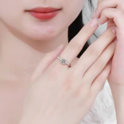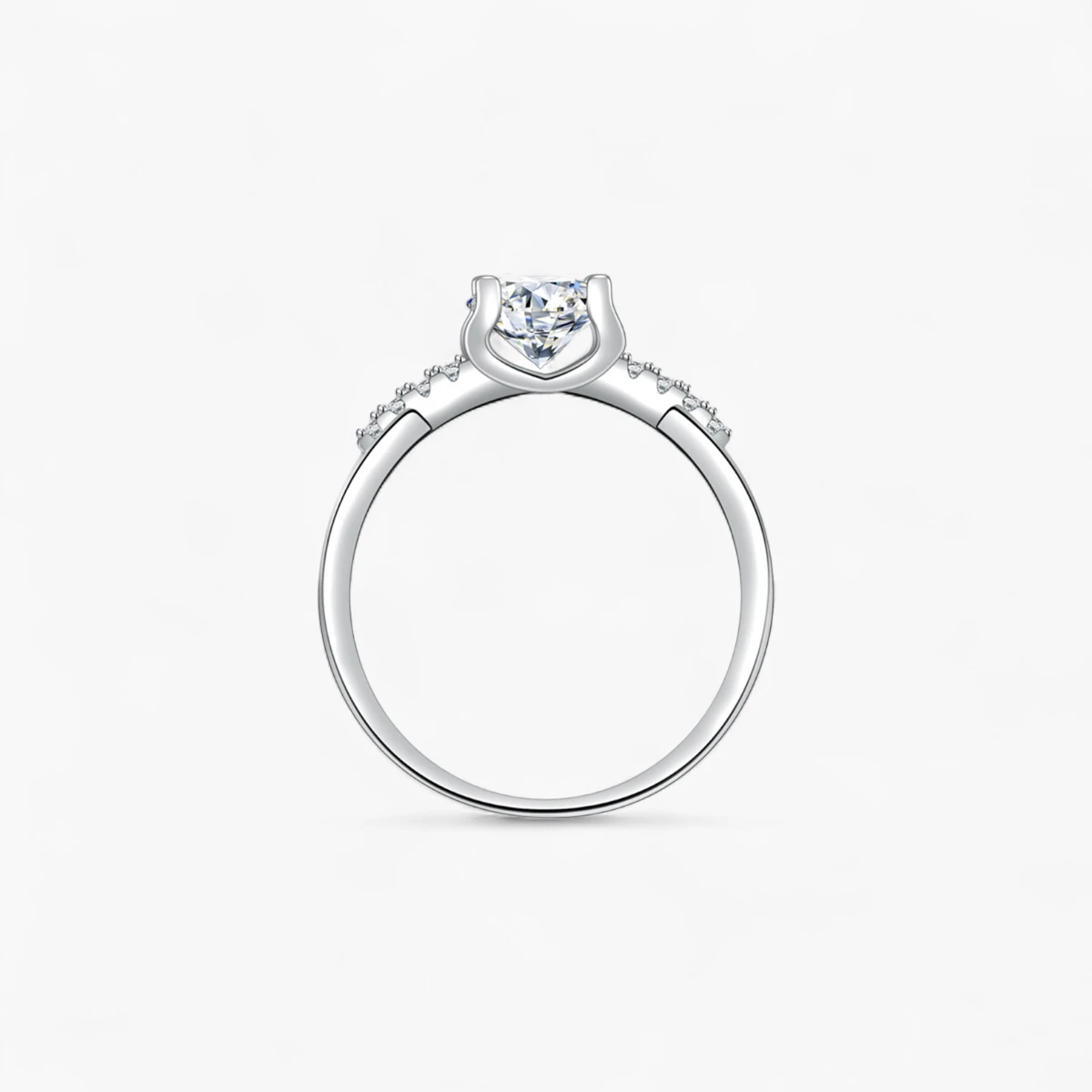 When you need a simple yet designer ring, look no further than this regal and elegant ring. This one is set with 1ct moissanite and 8 mini moissanites on both sides, give it as a gift to yourself.