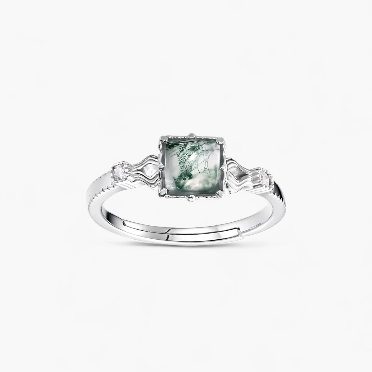 Our exquisite square moss agate silver ring, a perfect blend of nature’s beauty and fine craftsmanship. This stunning ring features a unique square-cut watercress agate gemstone, celebrated for its captivating green inclusions that resemble delicate watercress or foliage. Set in a sleek and durable silver band, this ring is designed to complement any outfit with its sophisticated and timeless appeal.