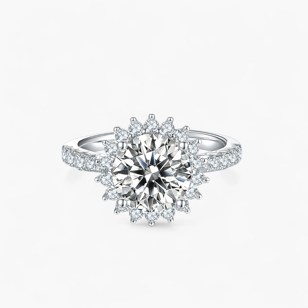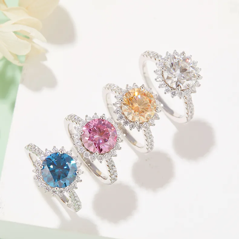 This ring is a romantic encounter between the sun and flowers, capturing the light of the universe at your fingertips. The carefully selected Moissanite stones sparkle in diamond white, blue, pink, and yellow, each more radiant than a real diamond, like the softest first light of dawn. The sunflower design symbolizes not only a hopeful outlook on life but also a timeless promise of love. The lightweight yet durable sterling silver band carries this brilliance and romance, making you shine on every special occasion. Wear it, and let love bloom like a sunflower, always turning toward the light, no matter the storm.