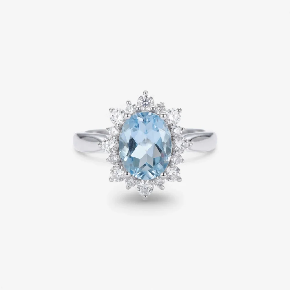 This halo topaz ring features a central stone gently embraced by a circle of sparkling Permtoya side stones, resembling the brightest star in the night sky guarding the gem at its center. The sterling silver band is simple yet full of texture, enhancing your skin tone and pairing effortlessly with any outfit. Whether for daily wear or special occasions, this ring will make you the focus with its undeniable sense of style!