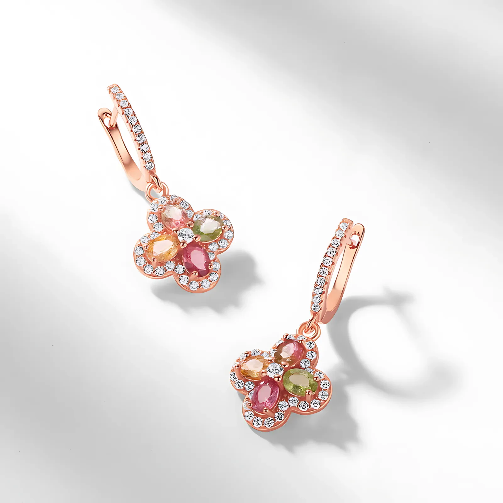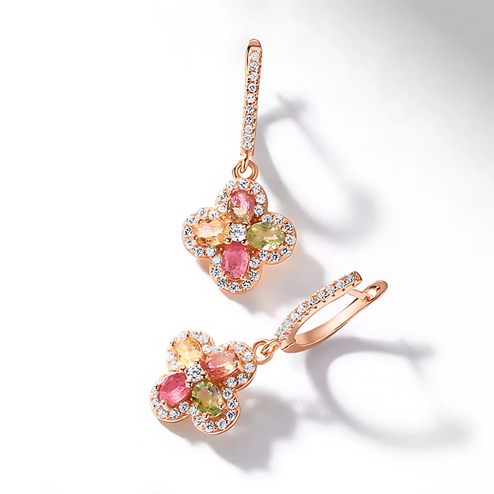 The tourmaline drop earrings are meticulously crafted with a clover motif that is both timeless and contemporary. The silver plating ensures durability and a lustrous finish that complements the vibrant hue of the tourmaline stones.