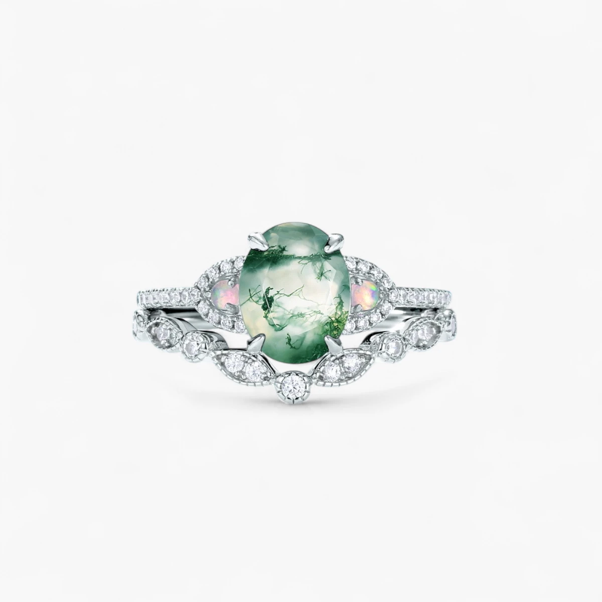 Embrace vintage charm with the 1.5ct Vintage Oval Moss Agate Stackable Ring, a sterling silver beauty adorned with a 1.5-carat oval Moss Agate as soft as jade, carrying a touch of tenderness from bygone eras. Its design is a blend of classic elegance and practicality, with a stackable feature that lets you mix and match to your heart’s content. Whether worn solo for a minimalist vibe or layered with other rings for a personalized fashion statement, it effortlessly creates a unique look. Slide it on, and let your fingers dance in a vintage-inspired dress, exuding both sophistication and playfulness with every movement.